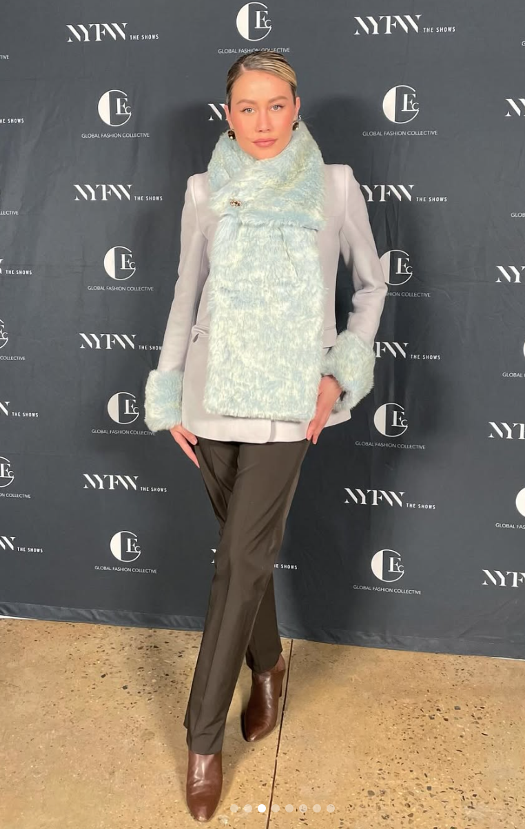This is an upcycled Reiss blazer, size small. The fur cuffs can easily be removed. The scarf is completely detachable and comes with the blazer. My measurements are 34b-26-36 and I’m 5’7
